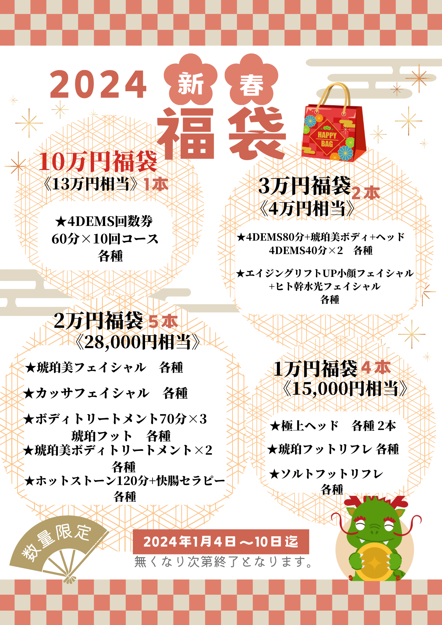 ※福袋のみの購入の販売も可能です。その際施術中の場合もございますので、お電話いただけますと幸いです。